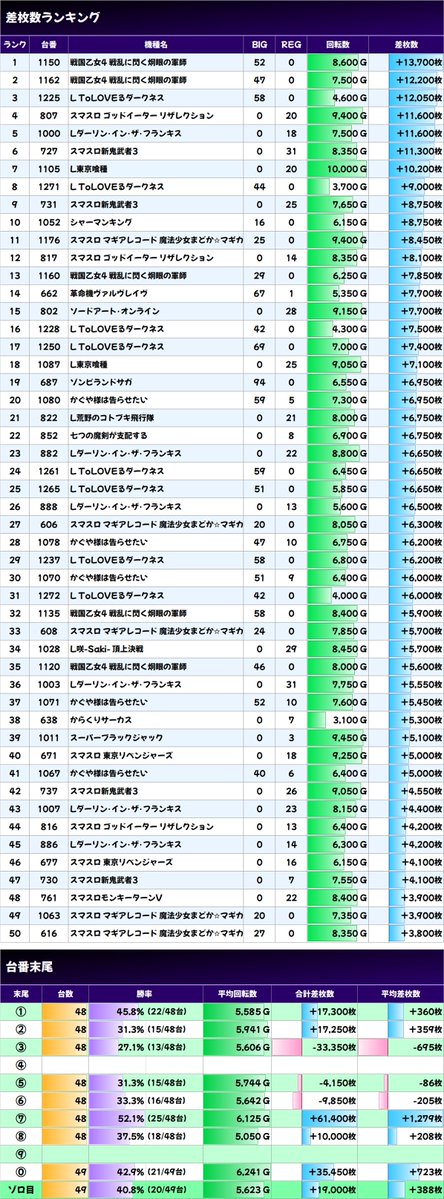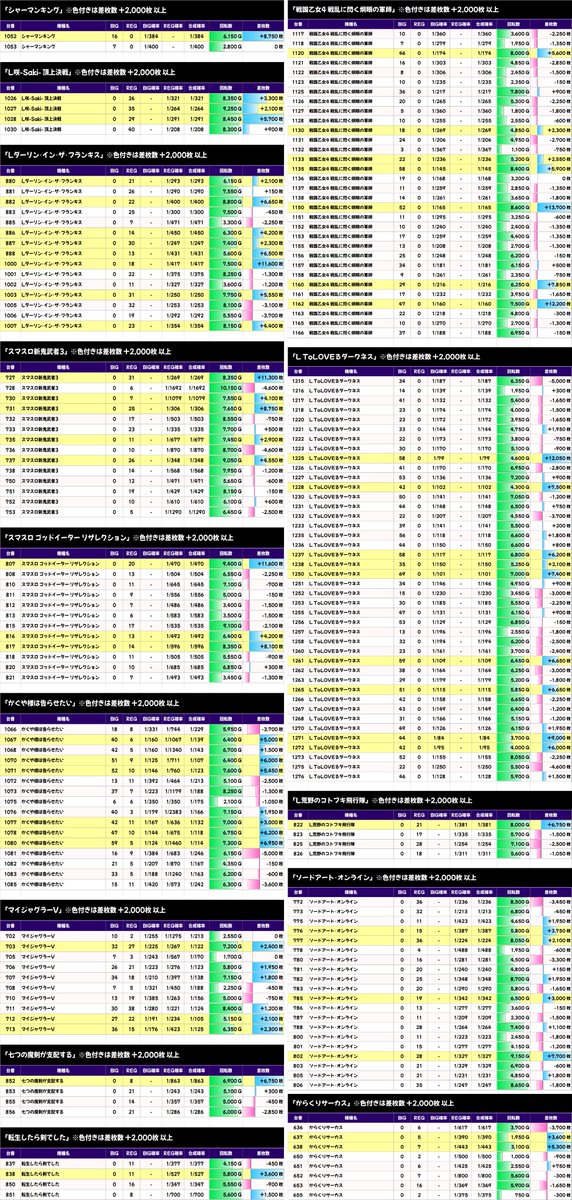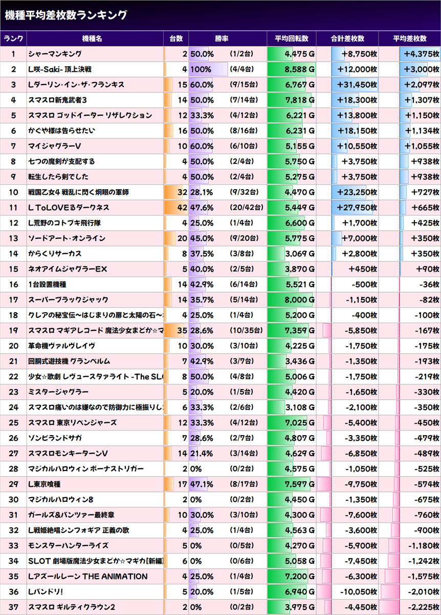 ✨平均差枚数上位機種✨