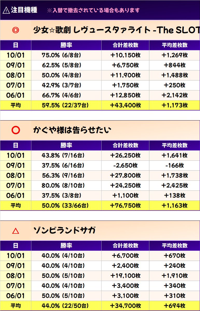 10/01 合計 0枚  平均 0枚(144/385台)