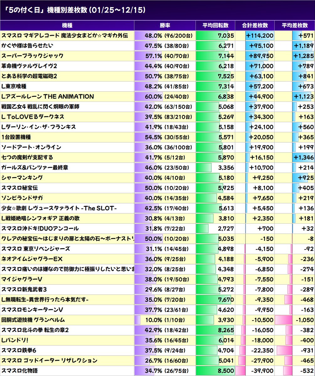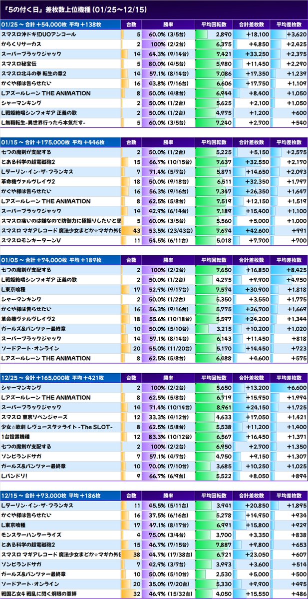 01/05 合計 +74,000枚 平均 +189枚(155/392台)