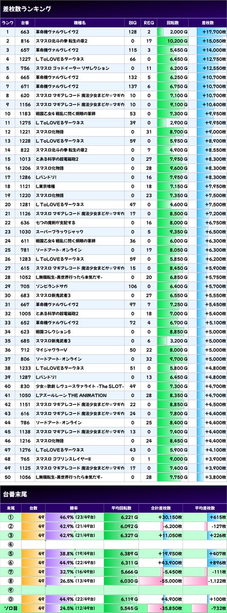 ✨平均差枚数上位機種✨
