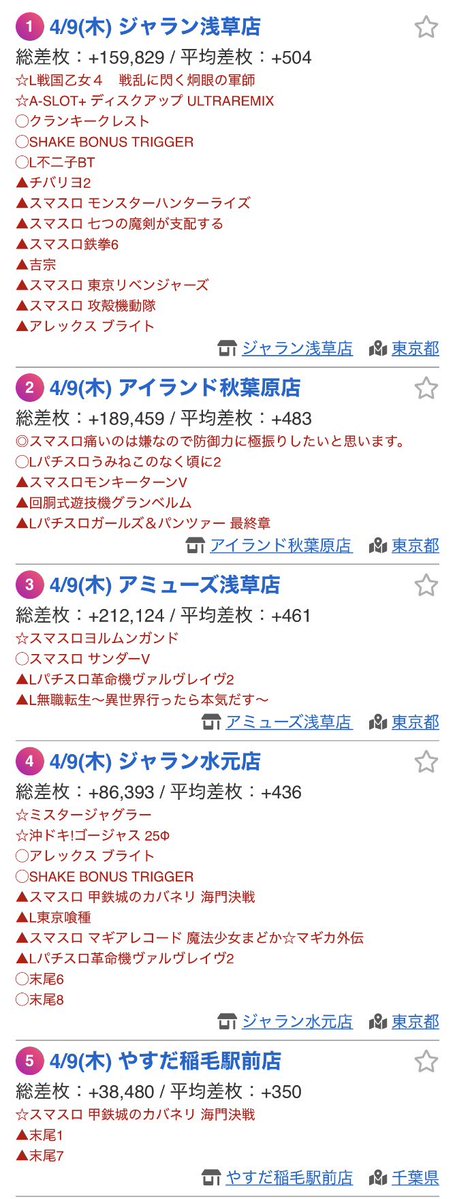 🗃️#4月9日の差枚優秀ホール🗃️