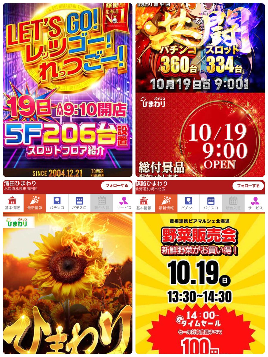 投稿本文: タワーひまわり 10月19日(日) 5Fフロア紹介!9:10開店 モバイル抽選受付時間は7:00~7:45までとなっております。 皆様のご来店を心よりお待ち致しております!!! https://39499.p-world.jp さらに表示
