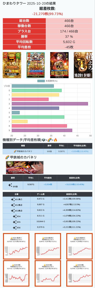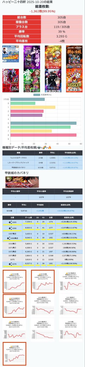 🗓️10/16 札幌出玉ランキング