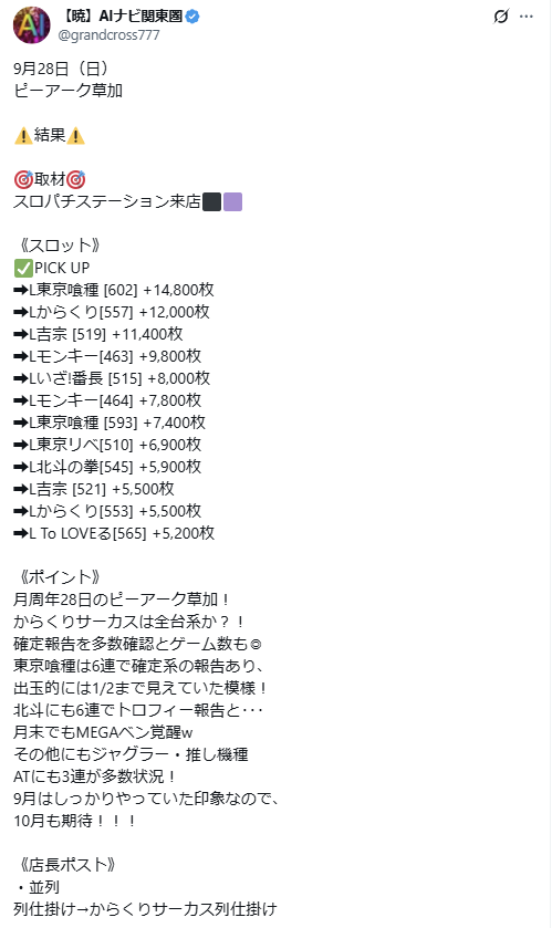 🍡スロパチfor埼玉🍡 https://twitter.com/sps_kanto/status/1981631751307907098