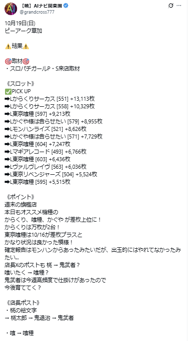 ・パチンコ https://twitter.com/P_Ark_Soka/status/1982024340347515233