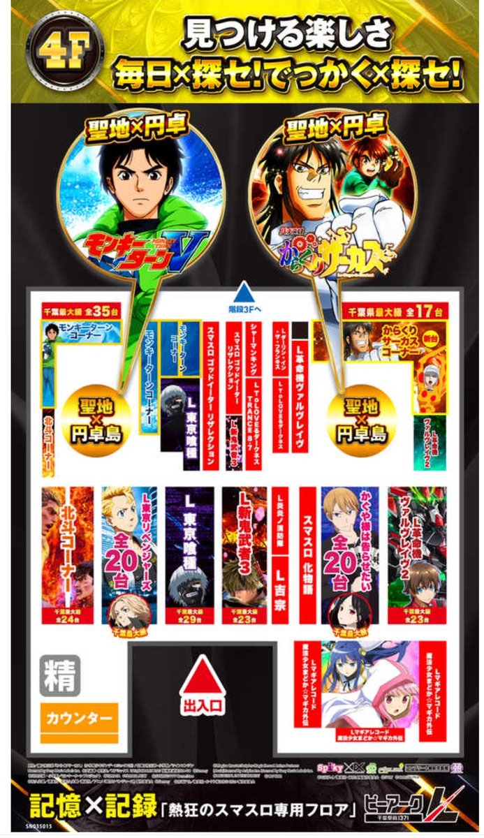 ✅4階円卓機種(モンキー&からくり)毎日1/4以上仕掛けあり!
