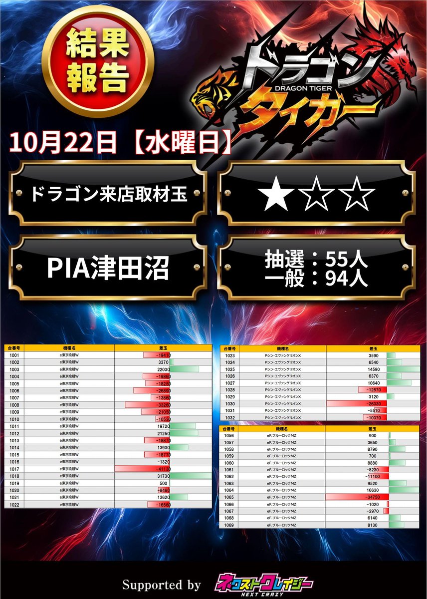 投稿本文: 10/22 ドラゴン来店取材玉(★☆☆)