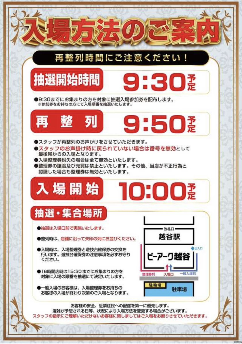今日ピーアーク越谷16時オープンだってさ