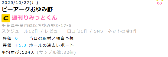 本日は千葉県 ピーアークおゆみ野 さまです🙋♀️