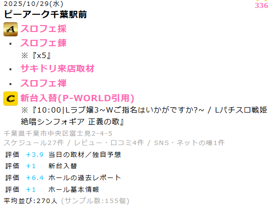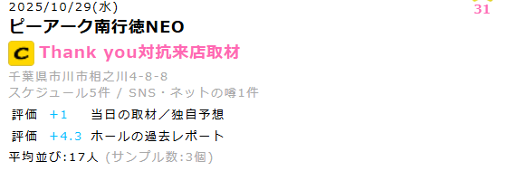📝10/25(土) ピーアークおゆみ野 結果まとめ