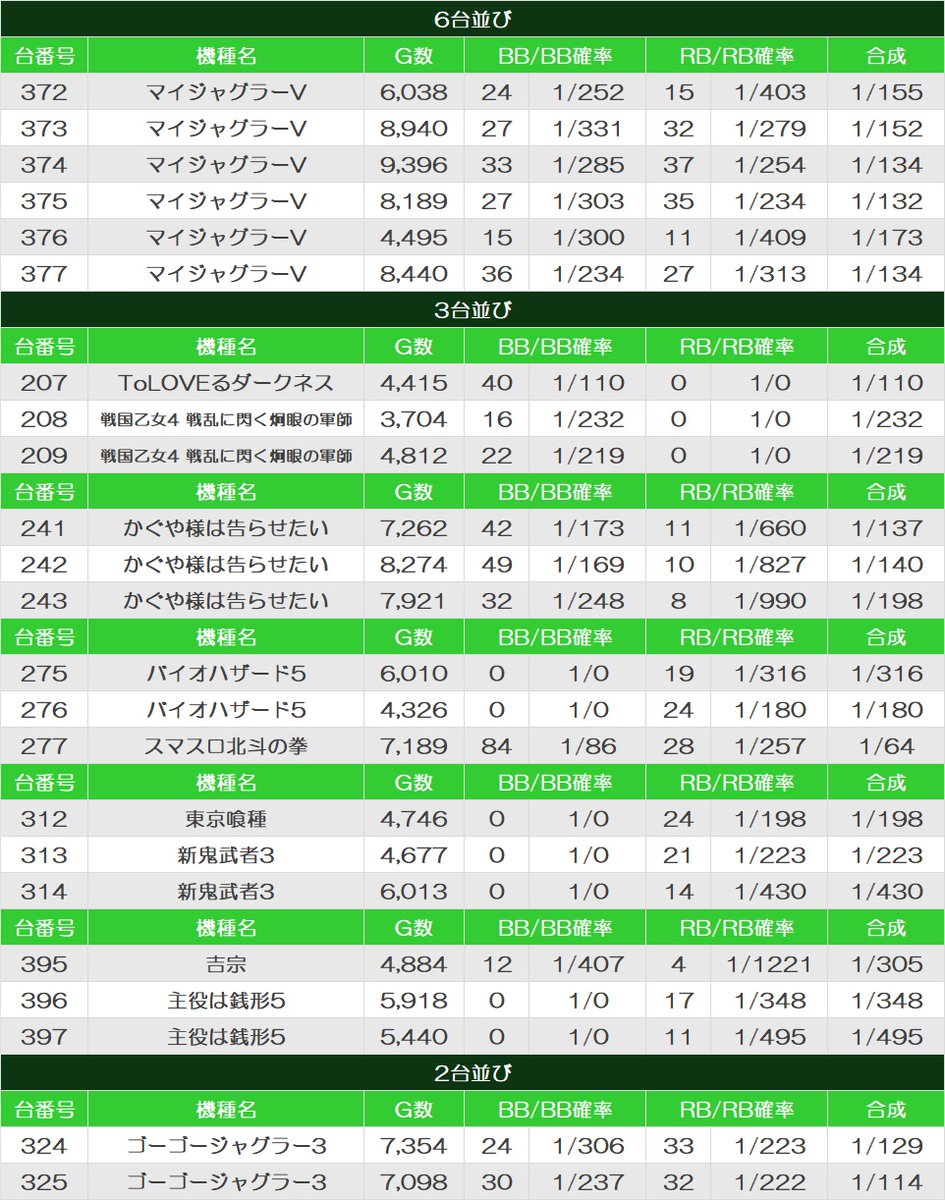 16時頃の出玉ランキング抜粋✍️