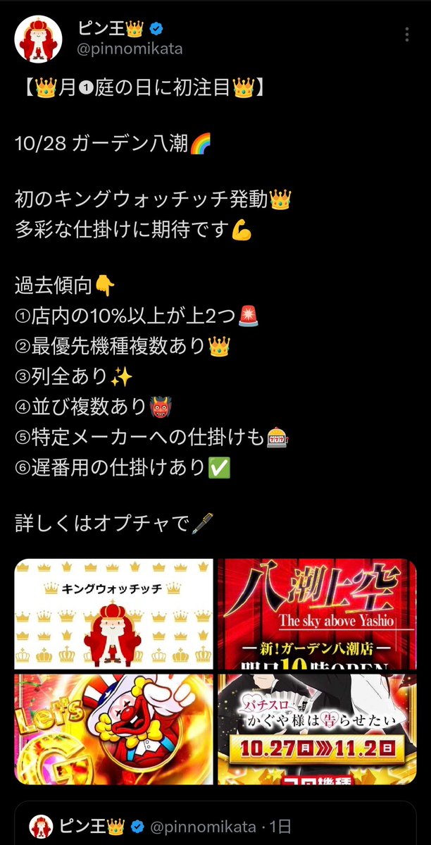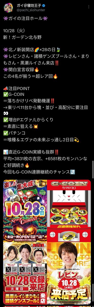 そんなにマニアックな入れ方はしてきてなさそうなので…無難に人気機種から? https://twitter.com/slotchousatai/status/1982734024222400889