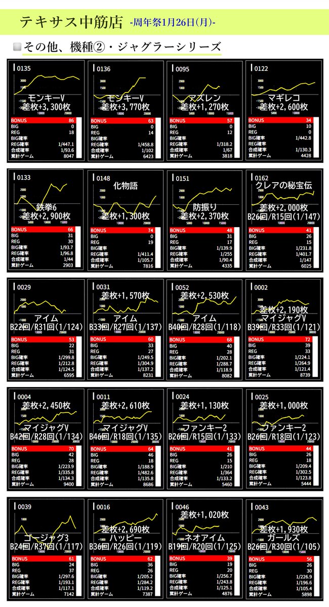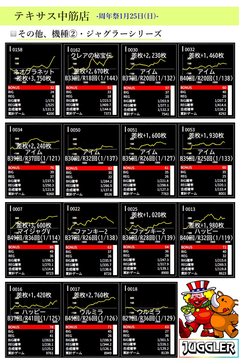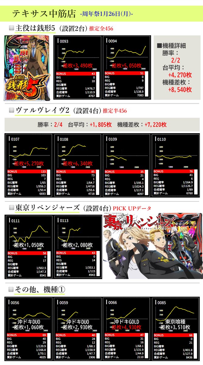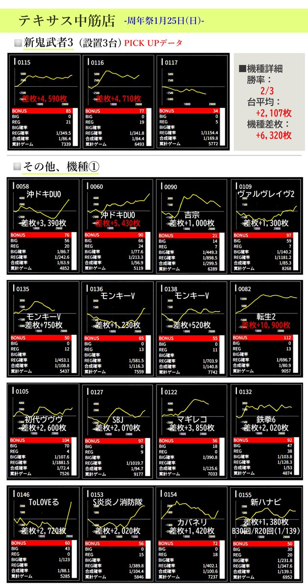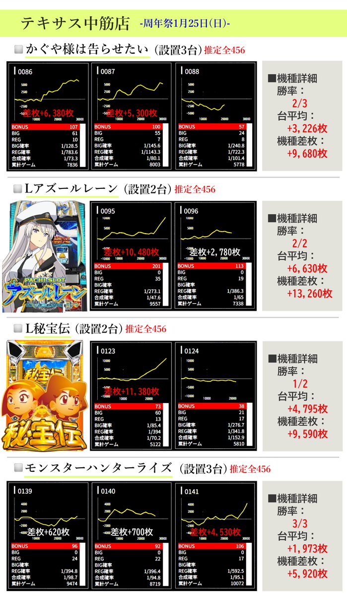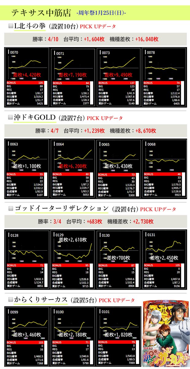 1日目に続き、1月25日(日)の周年当日も好調データが複数⤴️✨