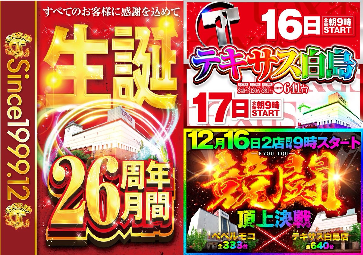✅テキサス白島店▶明日12月16日(水)