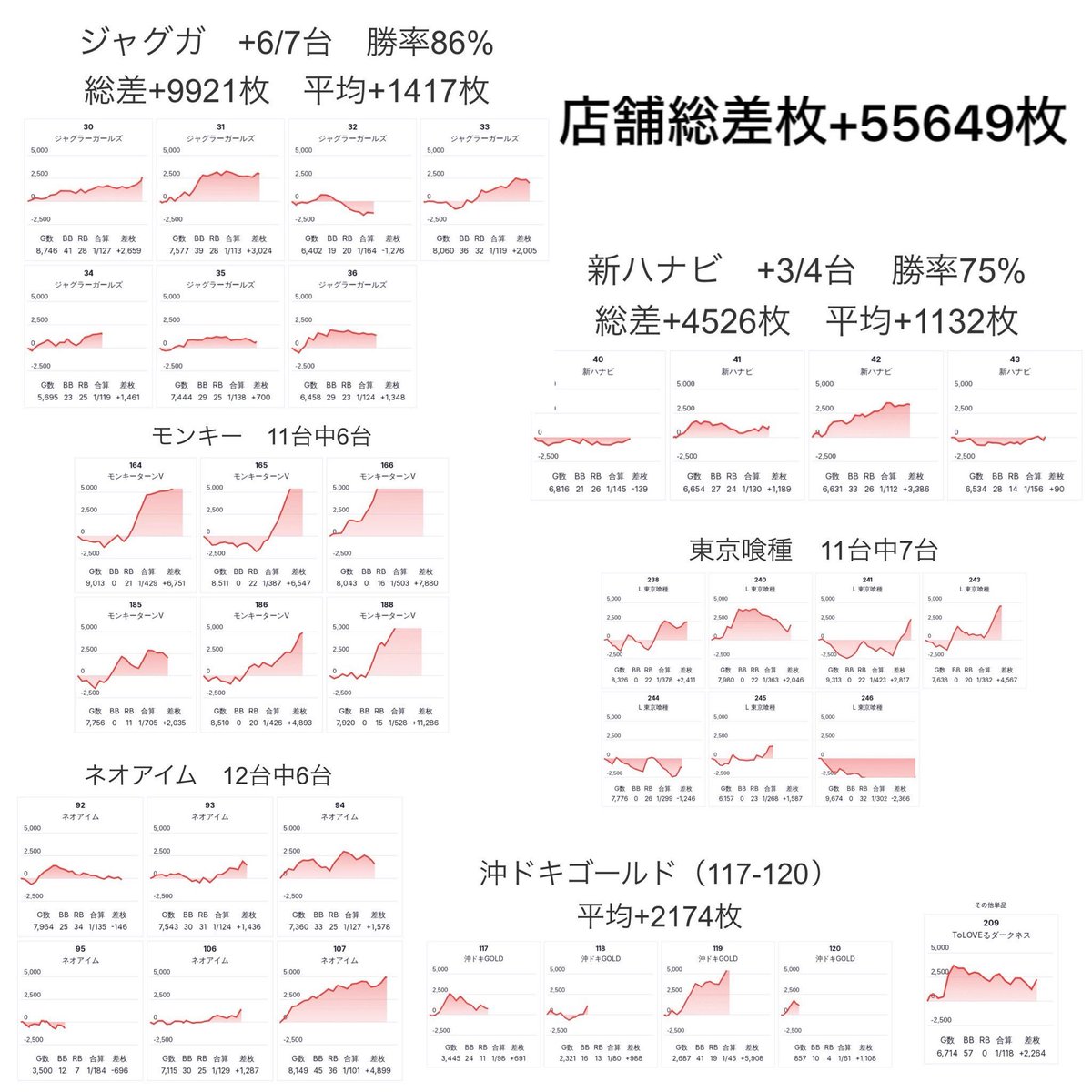 投稿本文: 11/27 楽園町田店<アルティメットCG調査隊>35/339台pickup総差+5.5万枚全台系、1/2、4台並び、単品の仕掛けあり🎯■全台系ジャグガ新ハナビ■1/2モンキー東京喰種ネオアイム■4台並び沖ドキゴールド さらに表示