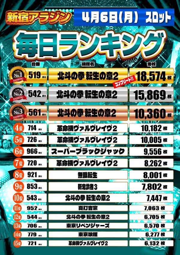 投稿本文: 4/8 新宿アラジン