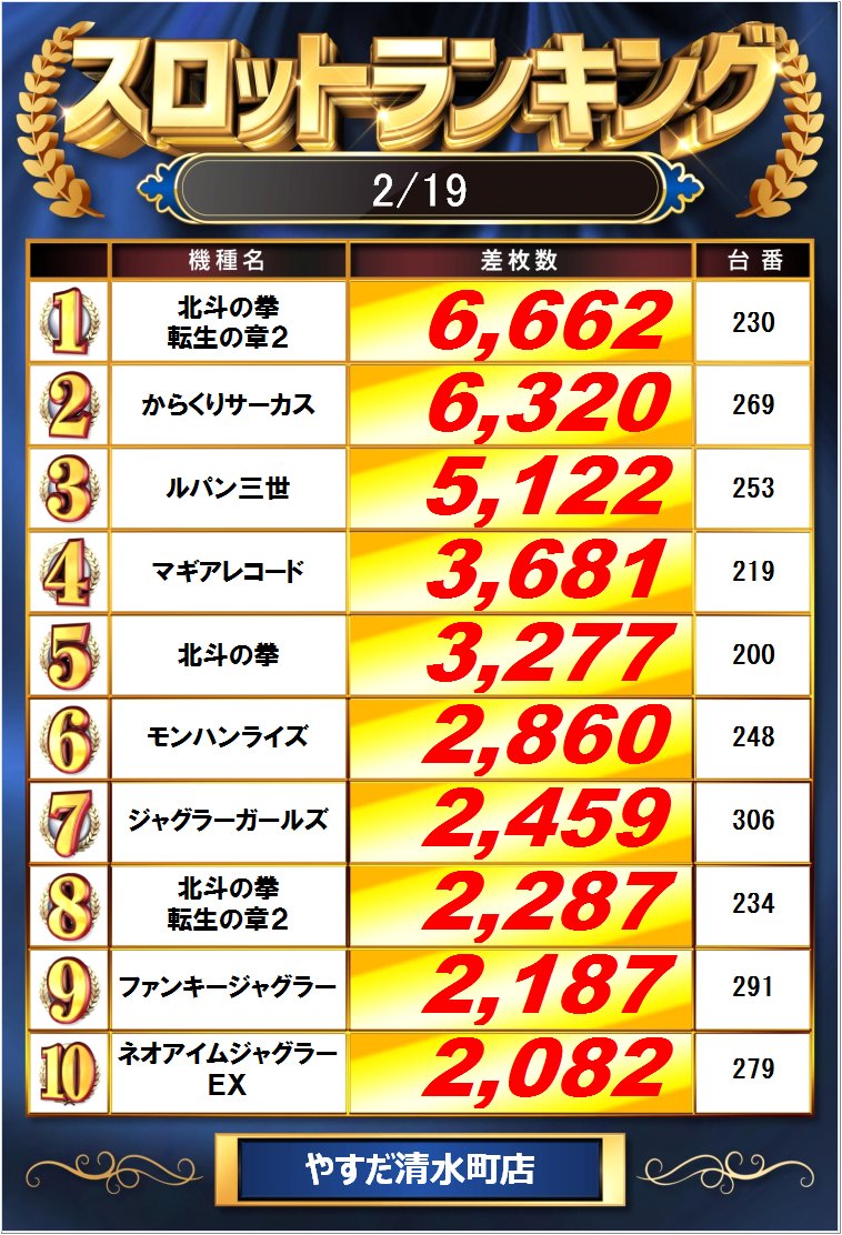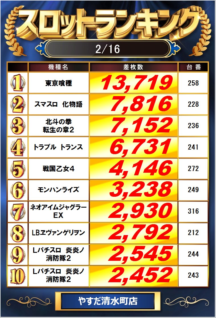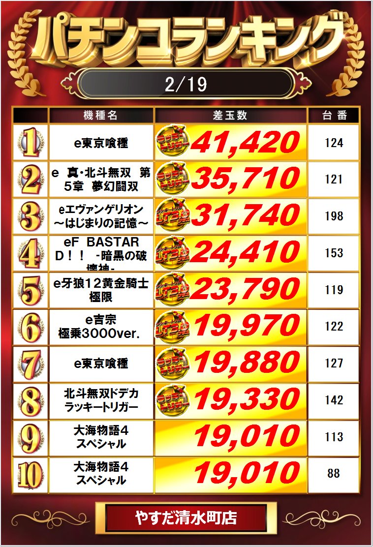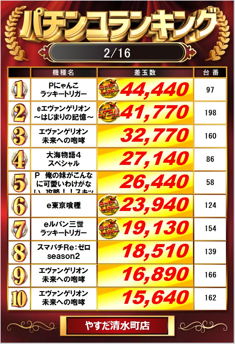 昨日のランキングです😀