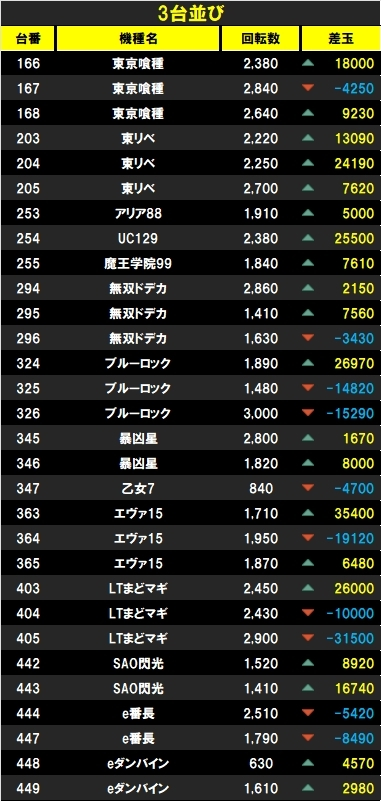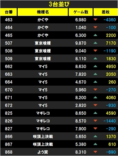 投稿本文: 12/7 コンサートホールエフ成増 結果🔥🌈FindX~探す楽しみを~/全機種全台抽選176人一般113人全体平均+10枚🎰スロット✅全系(3機種)・天翔・カバネリ・咲頂上決戦(並びと重複あり)✅6台並び(2箇所)・天翔~沖ゴ・GE~カバネリ✅3台並び(6箇所)・かぐや・東京喰種・マイ5×2 さらに表示