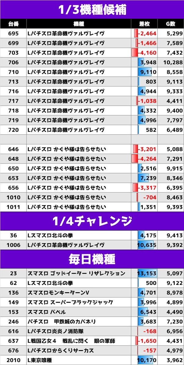 ➡︎L東リベ[+5/6台] 平均+3,205枚