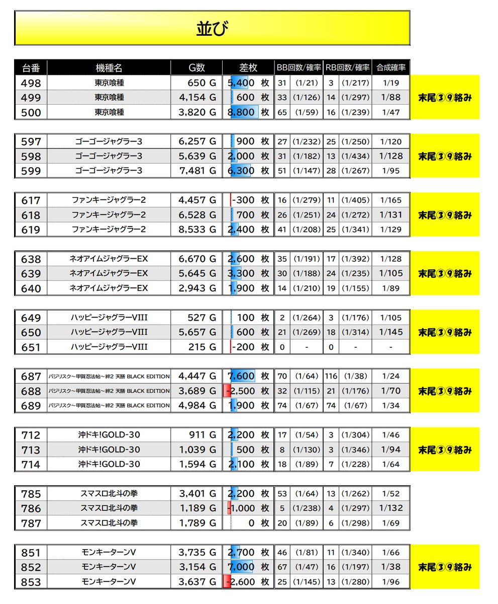 オススメ機種、さらにポストから並び箇所を絞ることができた。傾向を掴んでいれば狙いを絞ることができるため、オススメ機種やポストは必ずチェックしておきたい https://twitter.com/sloevekanto/status/2024608510865264763