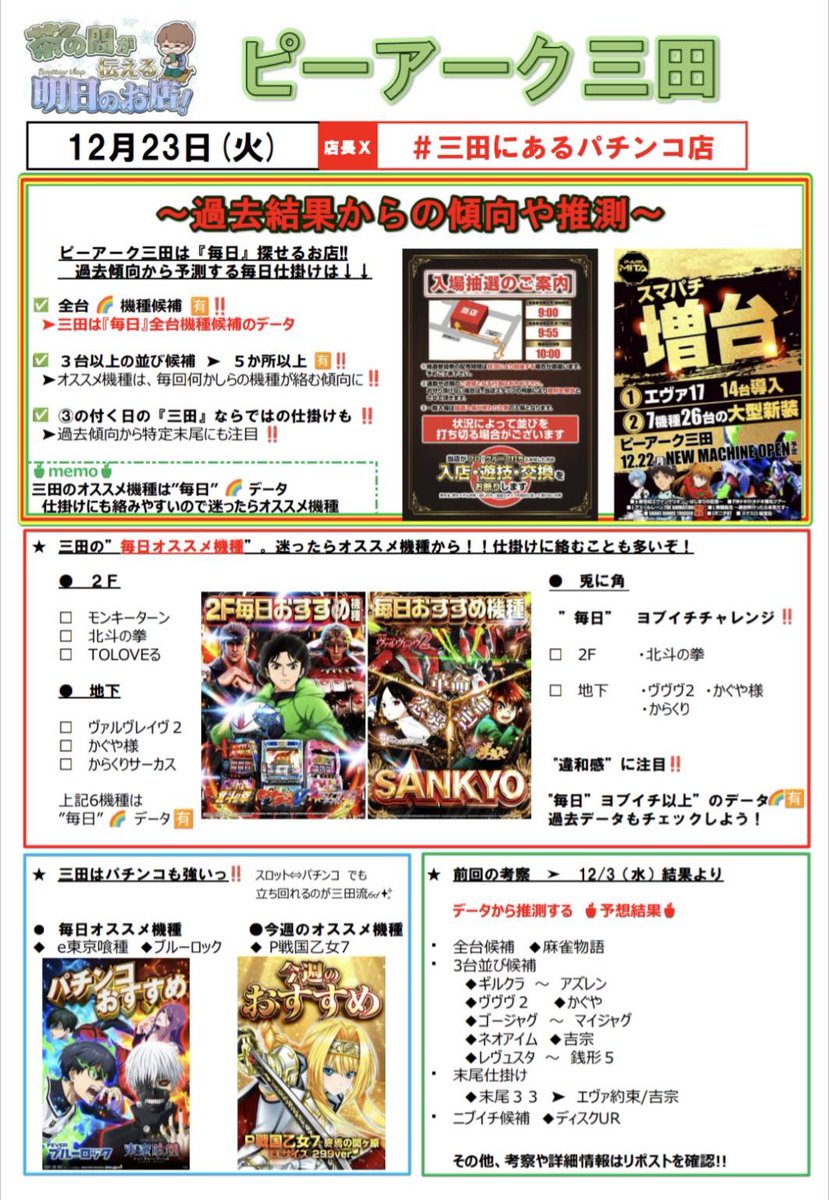 12/13ピーアーク三田店第二土曜日🦆かもくん潜入調査🦆のレポートです。