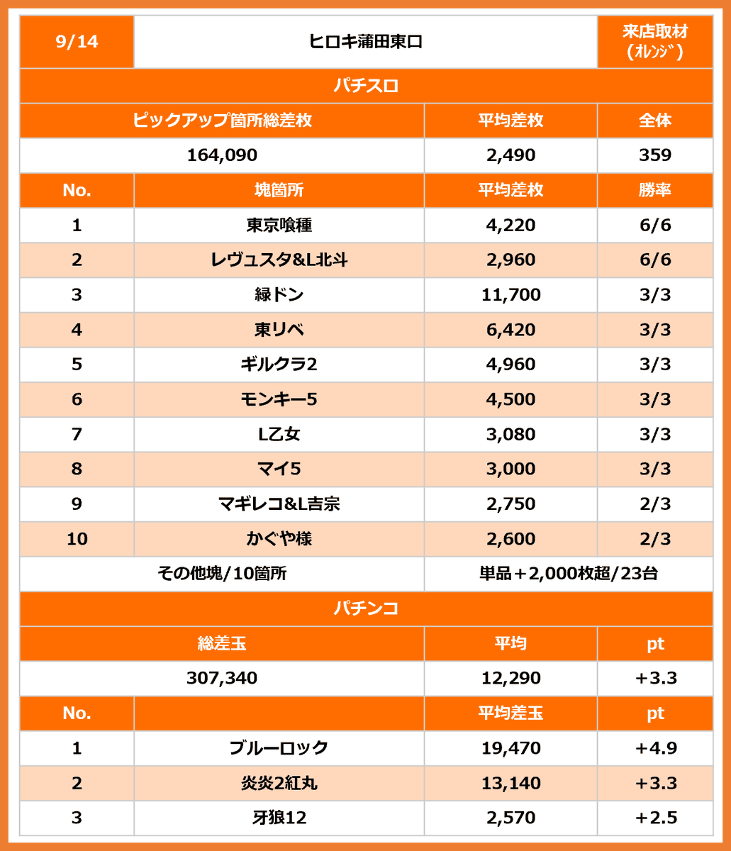 📝10/10(金) ピーアーク竹ノ塚 結果まとめ