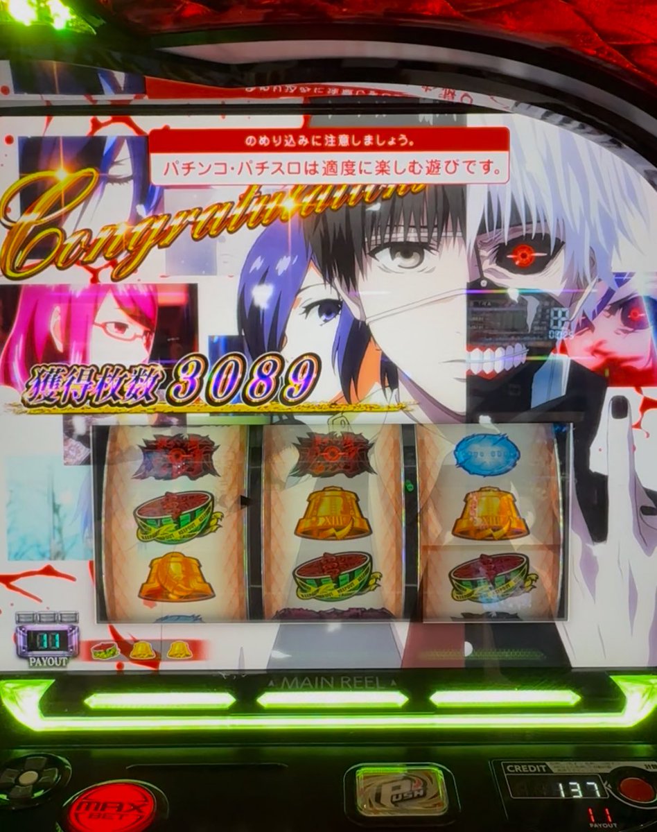 メッセ竹の塚でおすすめ東京喰種打つのまだ2回目だけど、ここでしか勝てない身体にされてしまう:(っ'ヮ'c):