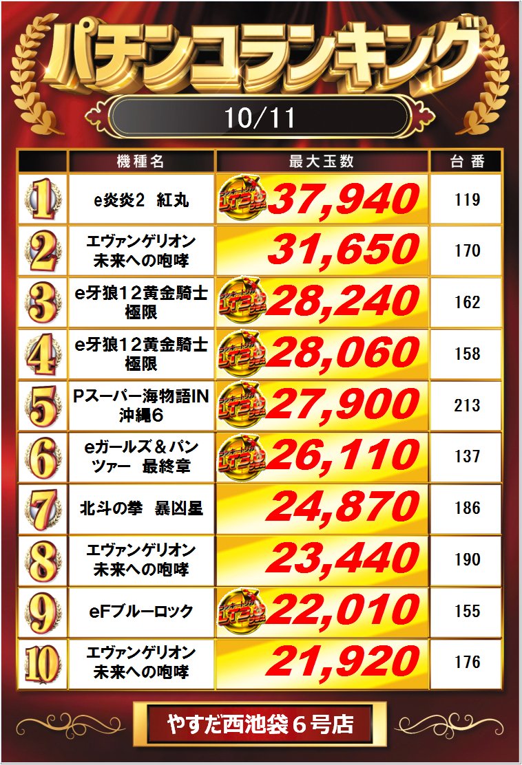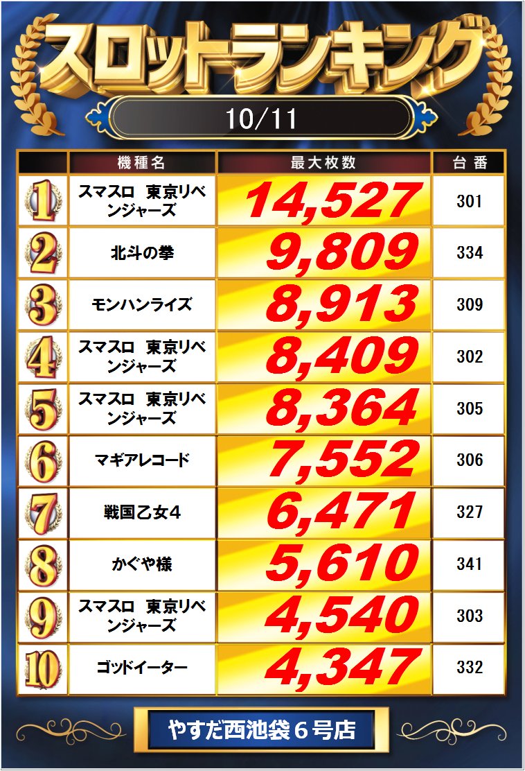 昨日のランキングです‼️