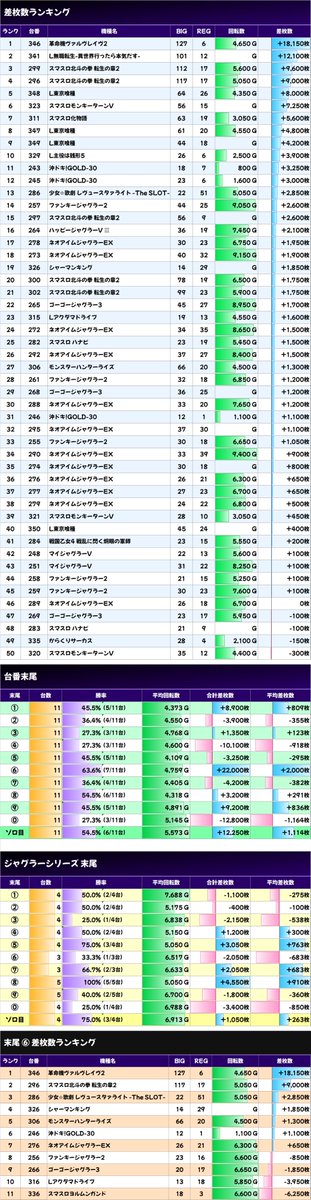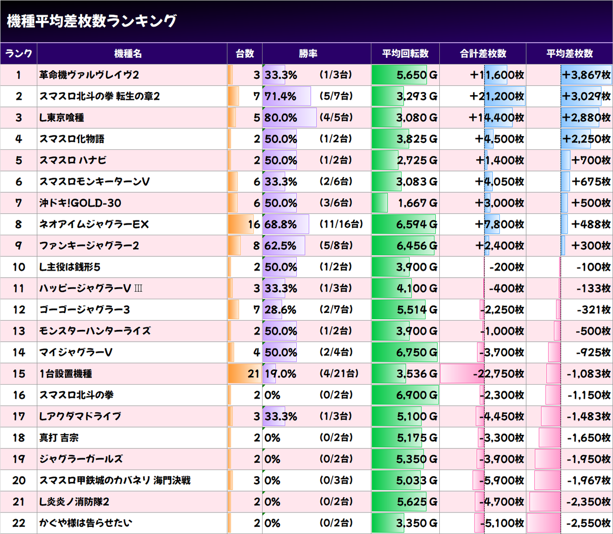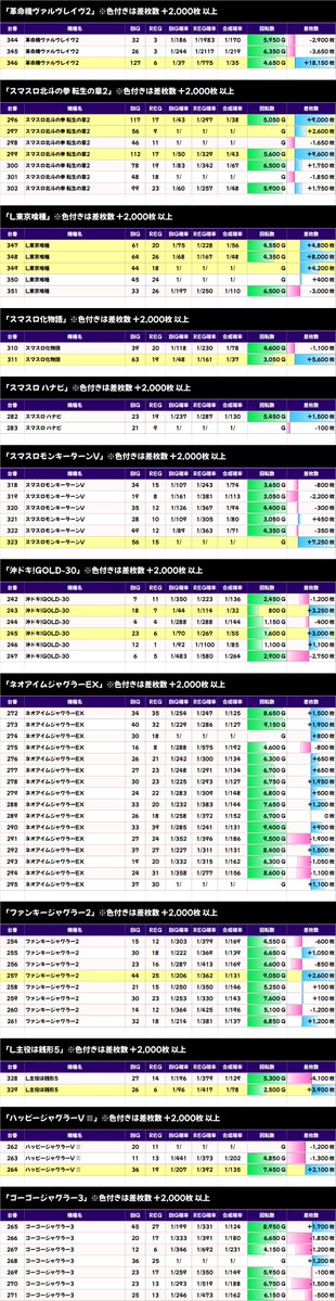 ✨平均差枚数上位機種✨