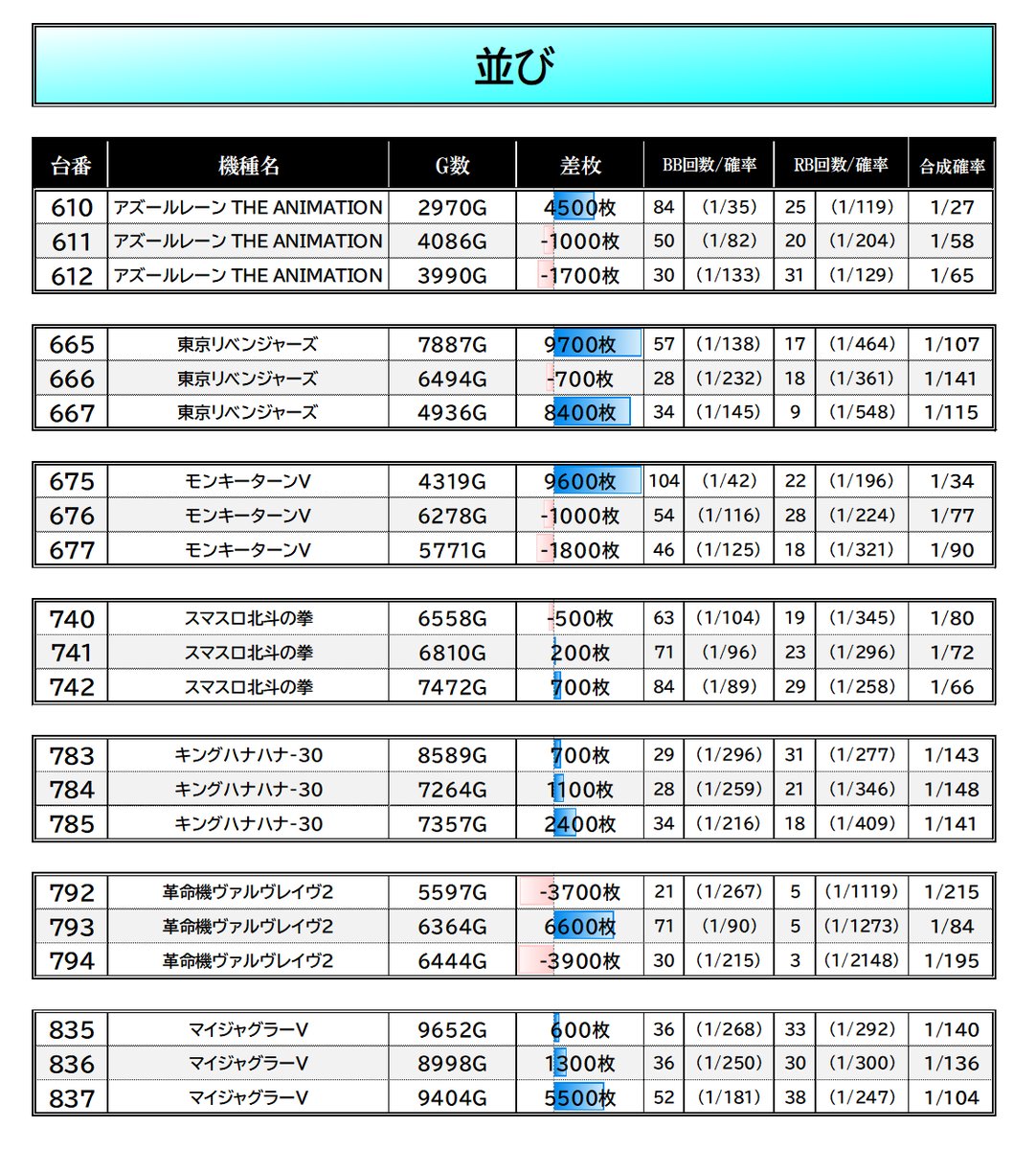 総差+4.2万枚 平均+60枚