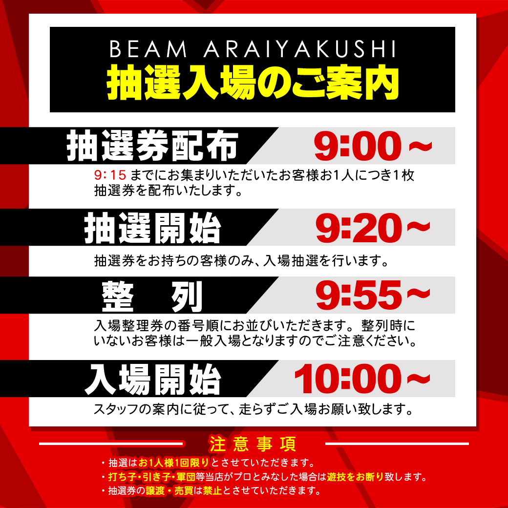 投稿本文: 🌈まだまだ続く🌈🌈BEAM新井薬師🌈🎉12年目突入🎉🔥全店合同🔥🔥8月16日🔥🔥朝10時開店🔥💗2日連続💗💗あんなさん💗💗実戦来店💗🔥入場方法🔥スロット》》》抽選入場パチンコ》》》抽選入場皆様のご来店お待ちしております🔥 さらに表示