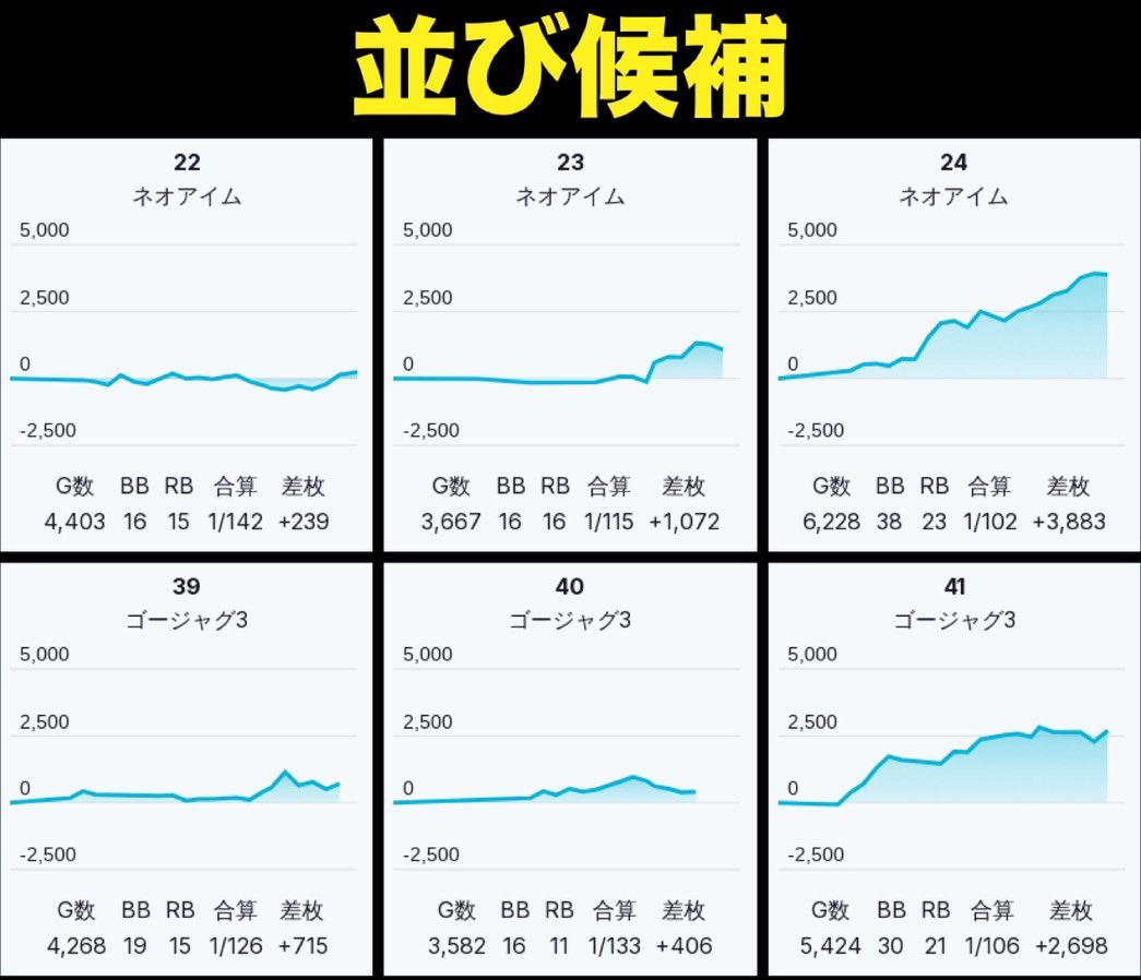 ジャグは単品候補も複数あり、並び候補と合わせて
