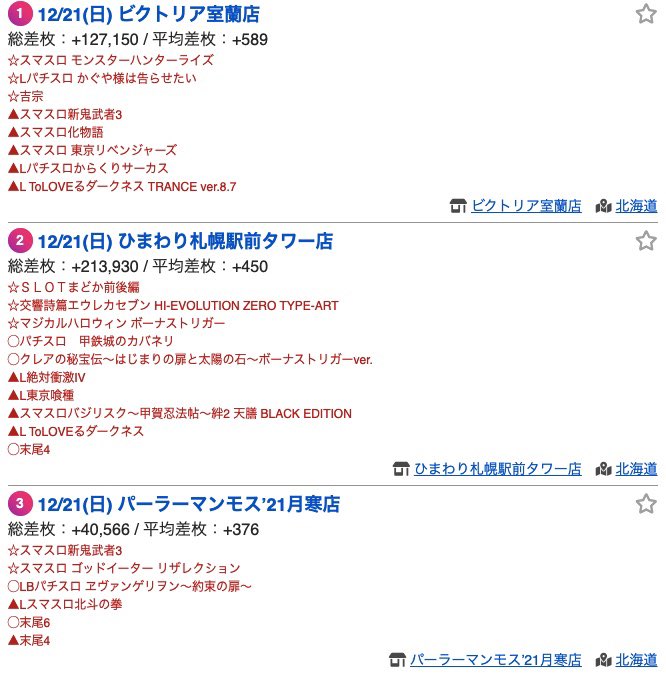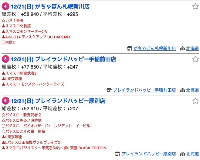 ⑥プレイランドハッピー厚別 https://twitter.com/kamuislot1/status/2002297012574957771
