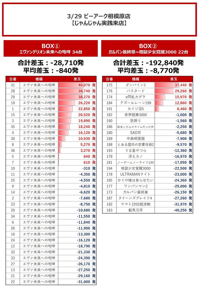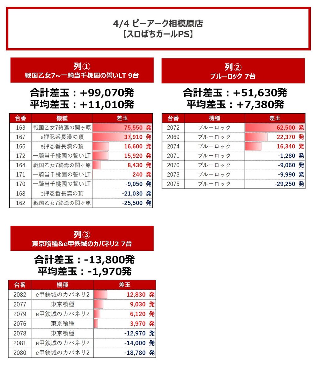 Ttl+51,630発/Av+7,380発 https://twitter.com/slotchousatai/status/2039951028183818720