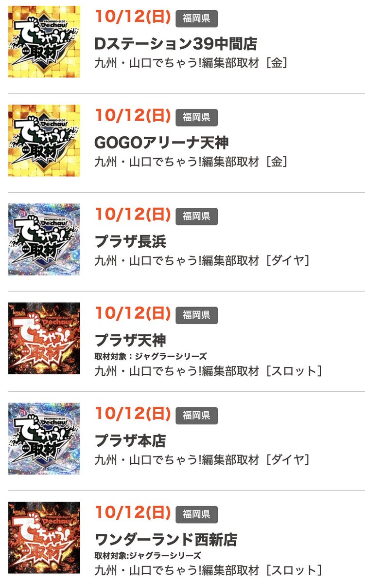 投稿本文: 【でちゃう編集部取材】・MJアリーナ干隈(でちゃう虹取材🌈)・プラザ長浜(ダイヤ)・プラザ本店(ダイヤ)・Dステーション中間(金)・GOGOアリーナ天神(金)・Pタウン下到津(金)・プラザ天神・ワンダーランド西新・ワンダーランド小戸・フェイス宗像・Dee5・ワンダーランド中津米山 さらに表示