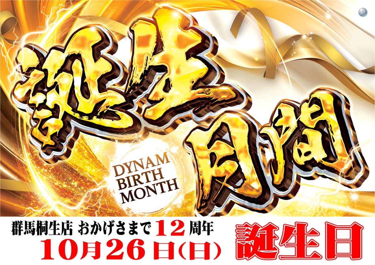 投稿本文: 10月1日よりダイナム桐生店 誕生月間スタート🎉ダイナム群馬桐生店はおかげさまで12周年を迎えます。これからも末永く愛される店舗を目指し、誠心誠意サービスに努めてまいります。今後も変わらぬご愛顧よろしくお願い致します💗10月もダイナム桐生店へGO!!🏃#ダイナム #誕生月 #桐生 さらに表示