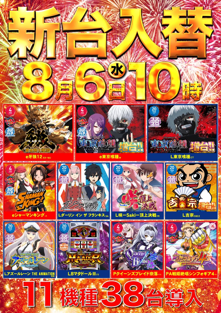 投稿本文: 👑マルハン荒尾店👑👑新⭐️台⭐️入⭐️替👑👑明日8月6日【水】👑👑10時OPEN👑👑最新機種導入完了👑⭐️入場抽選は 9:40開始⭐️⭐️ご来店お待ちしております⭐️#パチンコ#パチスロ #新台入替#マルハン荒尾店 さらに表示