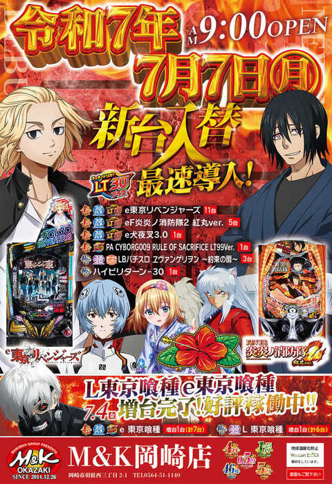 投稿本文: 🌻明日7/16の注目🌻💎愛知💎📌M&K岡崎店🎯8時30分抽選🧑🤝🧑🕘9時OPEN🌄🟪うるとらひっと🟪🐹東雲りりチャン来店🐹@oiuqx_6️⃣の日🔥🌟導入済新台🌟🎰ヱヴァンゲリヲン ~約束の扉~🎰ハイビリターン‐30🅿️e東京リベンジャーズ🅿️eF炎炎ノ消防隊2 紅丸ver.🅿️e犬夜叉3.0🫶来店🐹楽しみ〜🫶 さらに表示