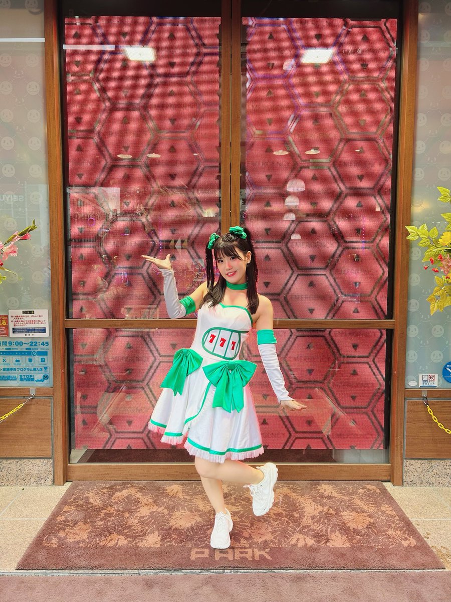 雨だけどたくさんのお客様が来店されて店内盛り上がってました✨私も元気にがんばったよ.ᐟ.ᐟ今日はスロ子の格好でした(๑'ڡ'๑)୨♡
