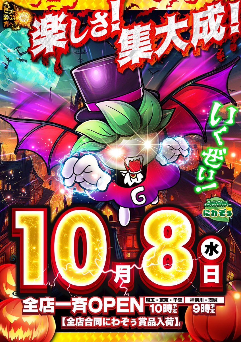 投稿本文: 10/8ガーデン与野本町カリスマの注目店😎8の日🔥新装2日目🆕キャラ誕🎂新装2日目の明日は8の日に加えキャラ誕ありと盛り上がり確実‼️新台🆕は初日朝から満台🈵狙い台着席には抽選参加が必須🏃♂️注目ポイント📝✅月初の8の日は狙い目🔥8/8📝北斗⭐️全6台 平均差枚約1,060枚 喰種🎭全6台 さらに表示