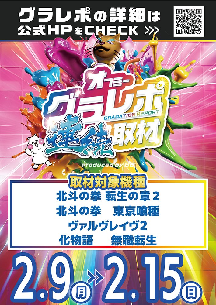 投稿本文: 本日もご来店ありがとうございます🌙 明日2月10日(火)は __《オフミーグラレポ連続取材2日目》📊 取材対象機種はコチラ 🔍 🔥 北斗の拳 転生の章2👊 北斗の拳🗼 東京喰種⚡ ヴァルヴレイヴ2🌸 化物語🌍 無職転生 ⏰ 抽選時間:9時30分~ 初日を踏まえてどう動くか。 さらに表示