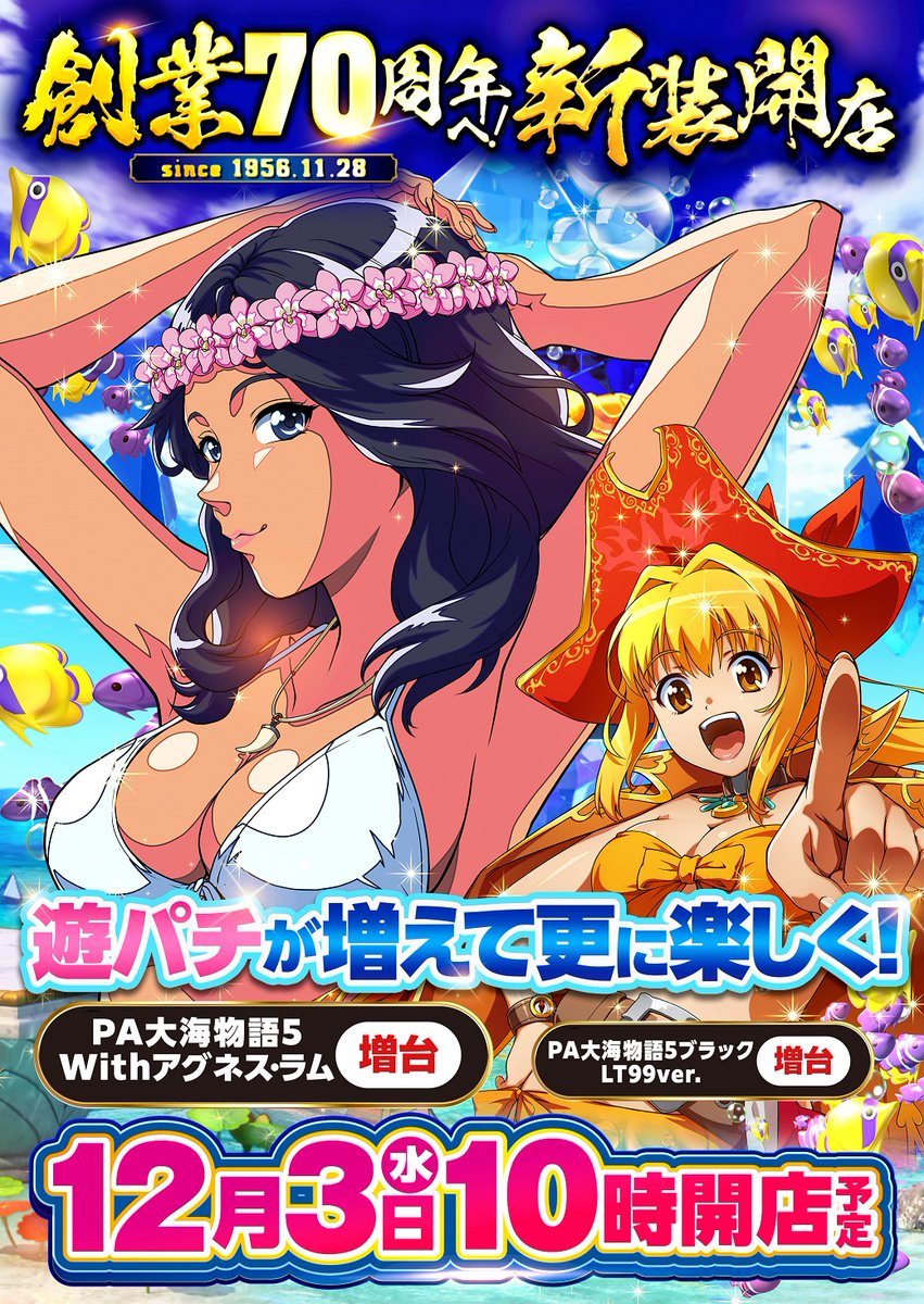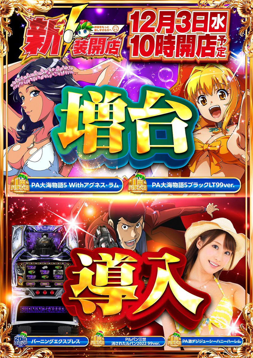 投稿本文: 1⃣2⃣月🚀🚀スタート🚀🚀創業70周年へ!明日も楽しすぎる方へ‼ガーデン松戸金ヶ作1⃣2⃣月4⃣日(木)1⃣0⃣時開店予定!!新装開店2日目⚡人気機種海物語増台PA大海物語5 Withアグネス・ラムPA大海物語5ブラックLT99ver.遊パチコーナーから2機種導入PA激デジジューシーハニーハーレム さらに表示