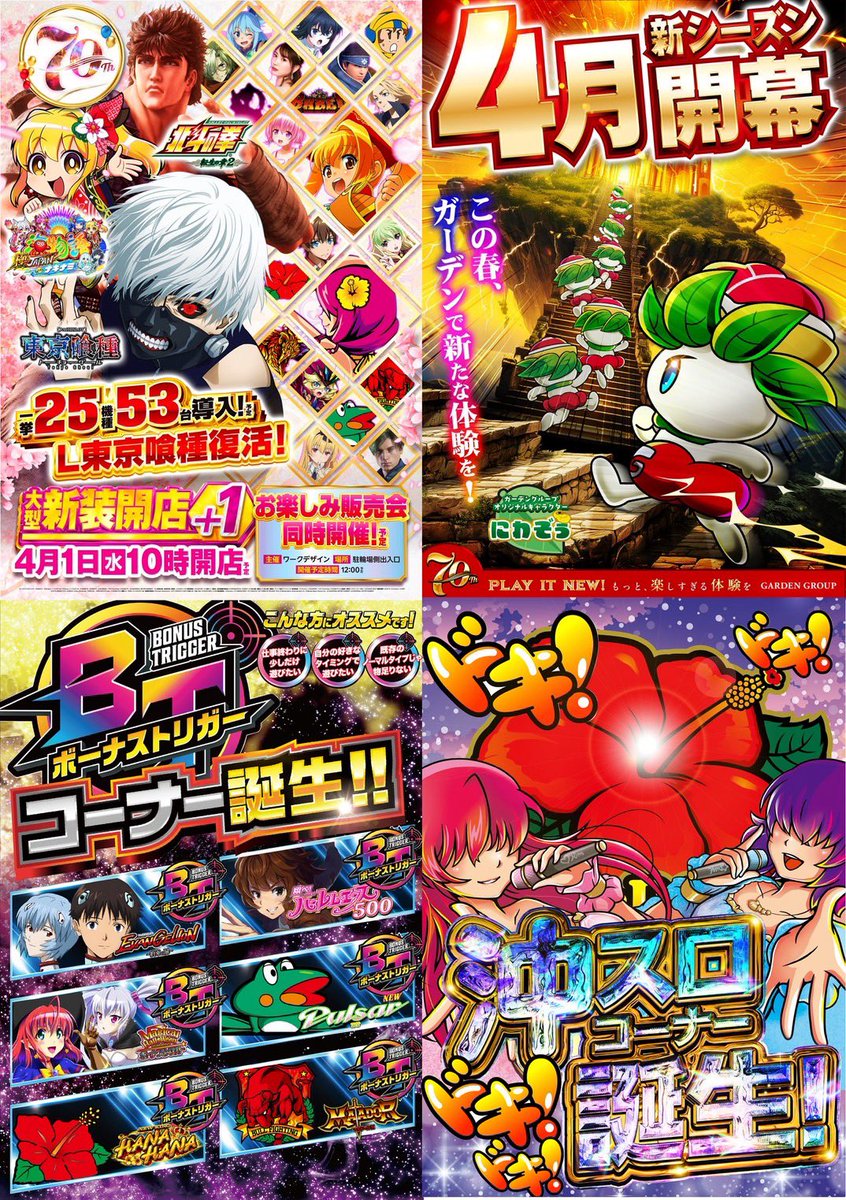 投稿本文: 4/1(水)🤡ガーデン松戸金ヶ作🤖#松戸金ケ作🌸4月新シーズン開幕🌸🌸この春ガーデンで新たな体験を🌸✅今週のオススメ機種✨🎯マイジャグⅤ⏩3週ぶっ通しで✨オススメ✨✅4月1回目の新装開店は‼️🟥大型新装開店🎉⏩25機種53台の大量導入‼️🎰20円スロット🎰🎯L東京喰種再導入‼️ さらに表示