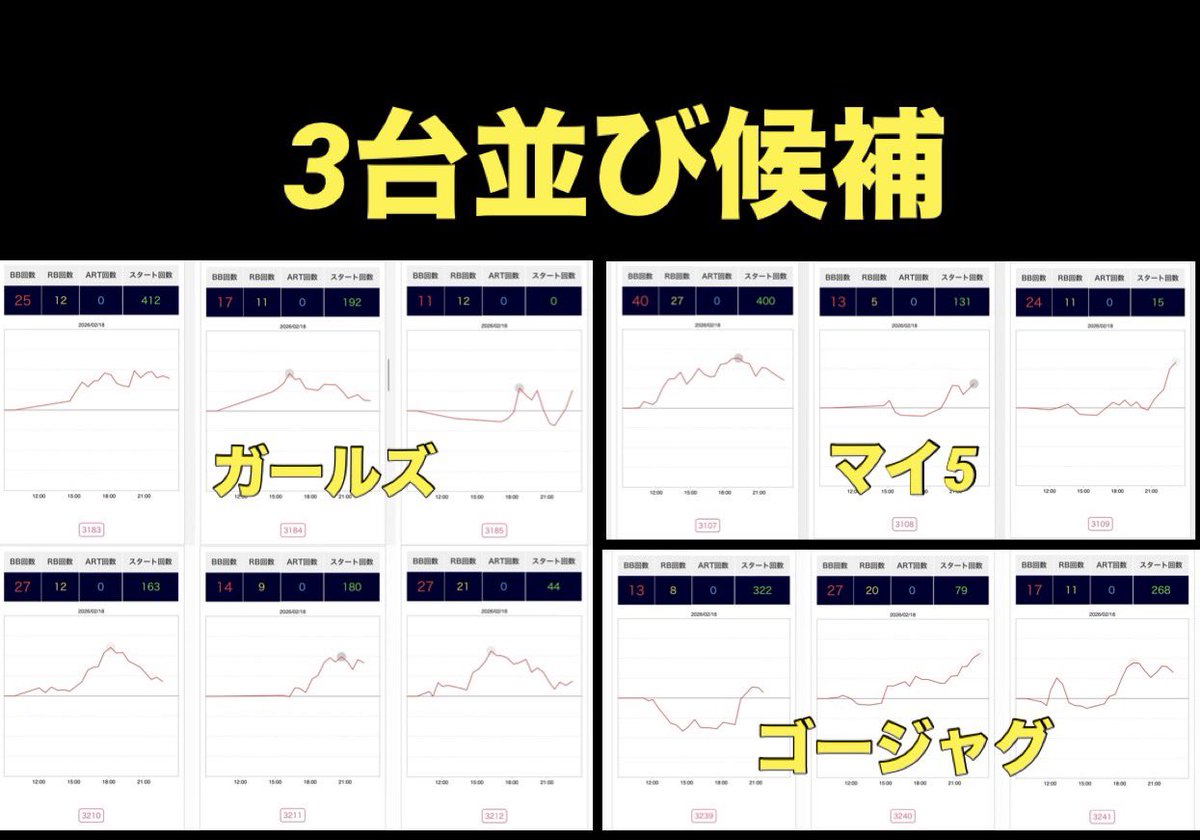 1/2候補が③機種、3台並びが⑤箇所の仕掛け🔥 https://twitter.com/chanoma_777/status/2023666915013763361
