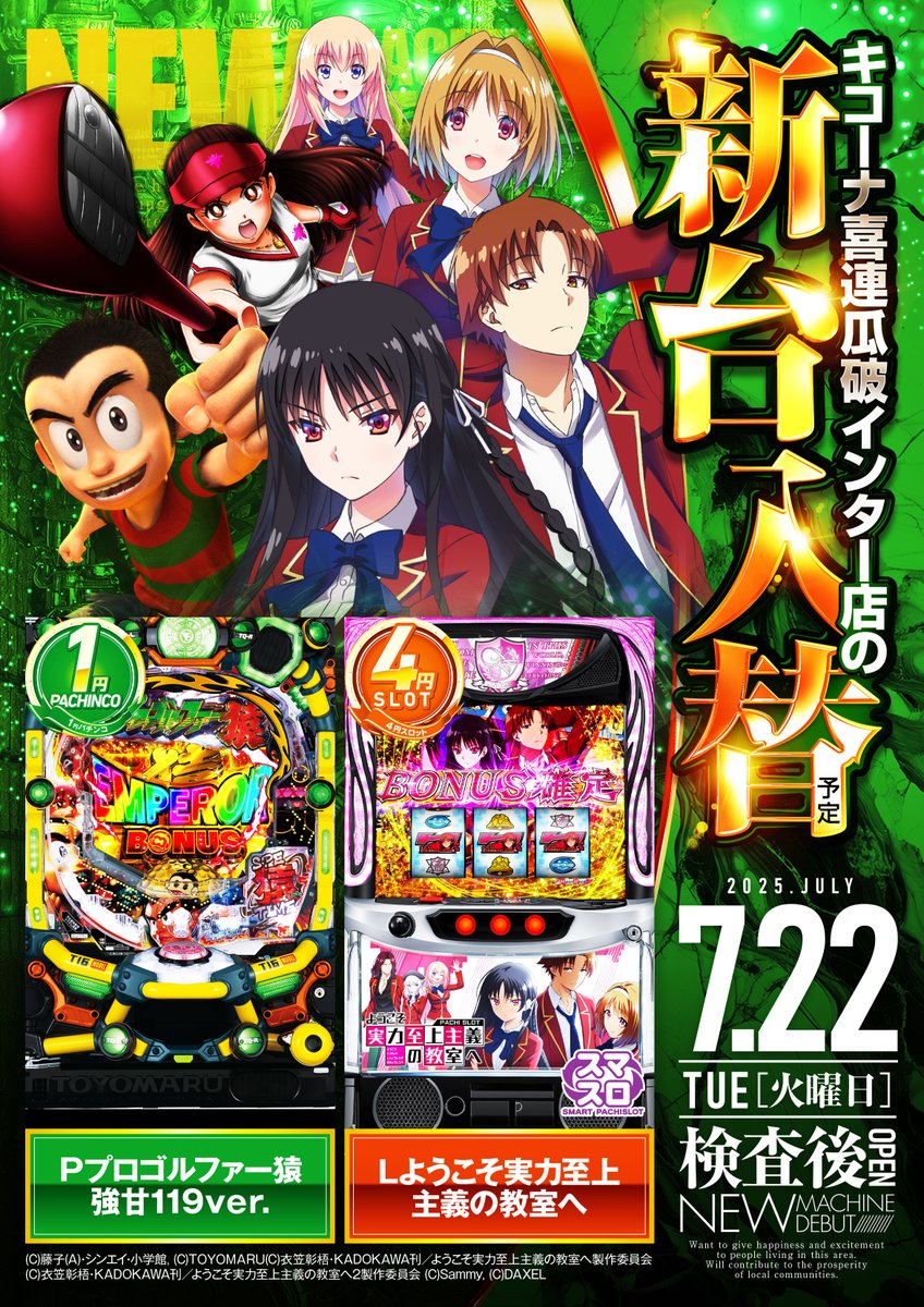 投稿本文: キコーナ喜連瓜破インター店です!明日7月22日(火)は新台入替初日🎉最新台「eマギアレコード」最速解禁!4円スマパチコーナーも増台しております☺️さらに20円スロットコーナーは「北斗の拳」増台!!💪皆さまのご来店心よりお待ちしております😇#つぶやキコーナ #新台入替 さらに表示