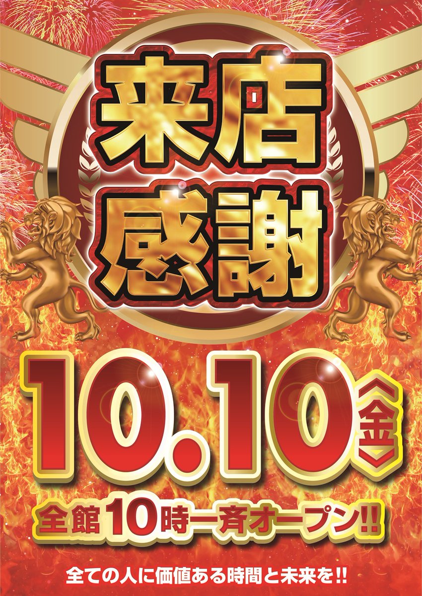 投稿本文: 🌙こんばんは!アミューズ富田林店です✨明日【10月10日(金)】は🎊✨アミューズグループ全店一斉✨💖《来店感謝》💖⏰朝10時OPEN‼️10月大型新台入替完了✨ご来店の皆さまへ🎁総付景品配布予定‼️明日は朝からアミューズ富田林へ‼️#アミューズ #富田林 #来店感謝 #新台入替 さらに表示
