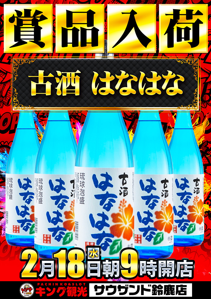 投稿本文: こんばんは🌙キング観光サウザンド鈴鹿店です🎵明日は、2月18日(水)☀️朝9時開店☀️✨賞品入荷✨🌺🌺🌺古酒 はなはな🌺🌺🌺明日もサウザンド鈴鹿店で❗️👑👑お楽しみください👑👑#鈴鹿 #パチンコ #スロット #キング観光 #サウザンド鈴鹿店 さらに表示