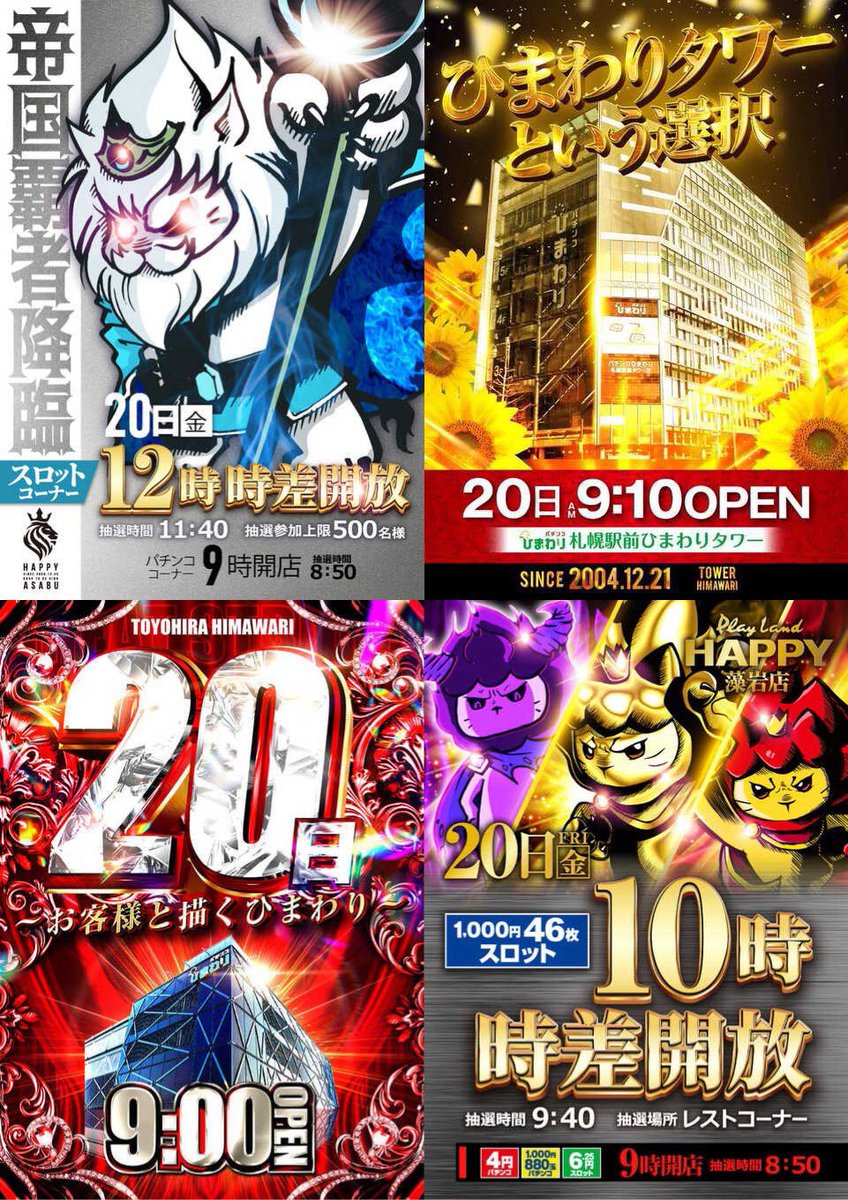 @Astarhanahana 789の日は大手マルハンとイーグルハピが対抗してひまわりは独自集客で頑張ってますからね。特にここ最近の豊平ひまわりは圧巻です🌻