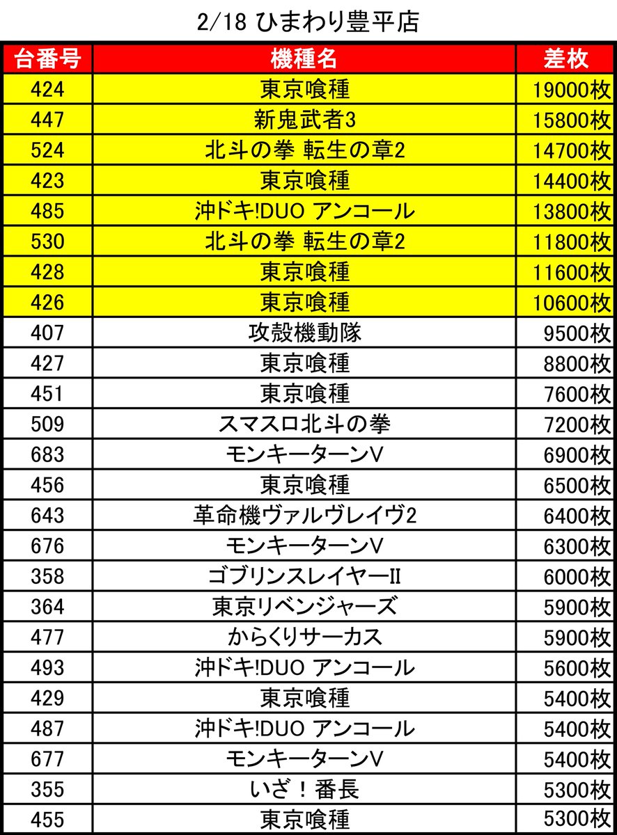 【2/18 ひまわり豊平店】時差10:00オープン!→集計結果