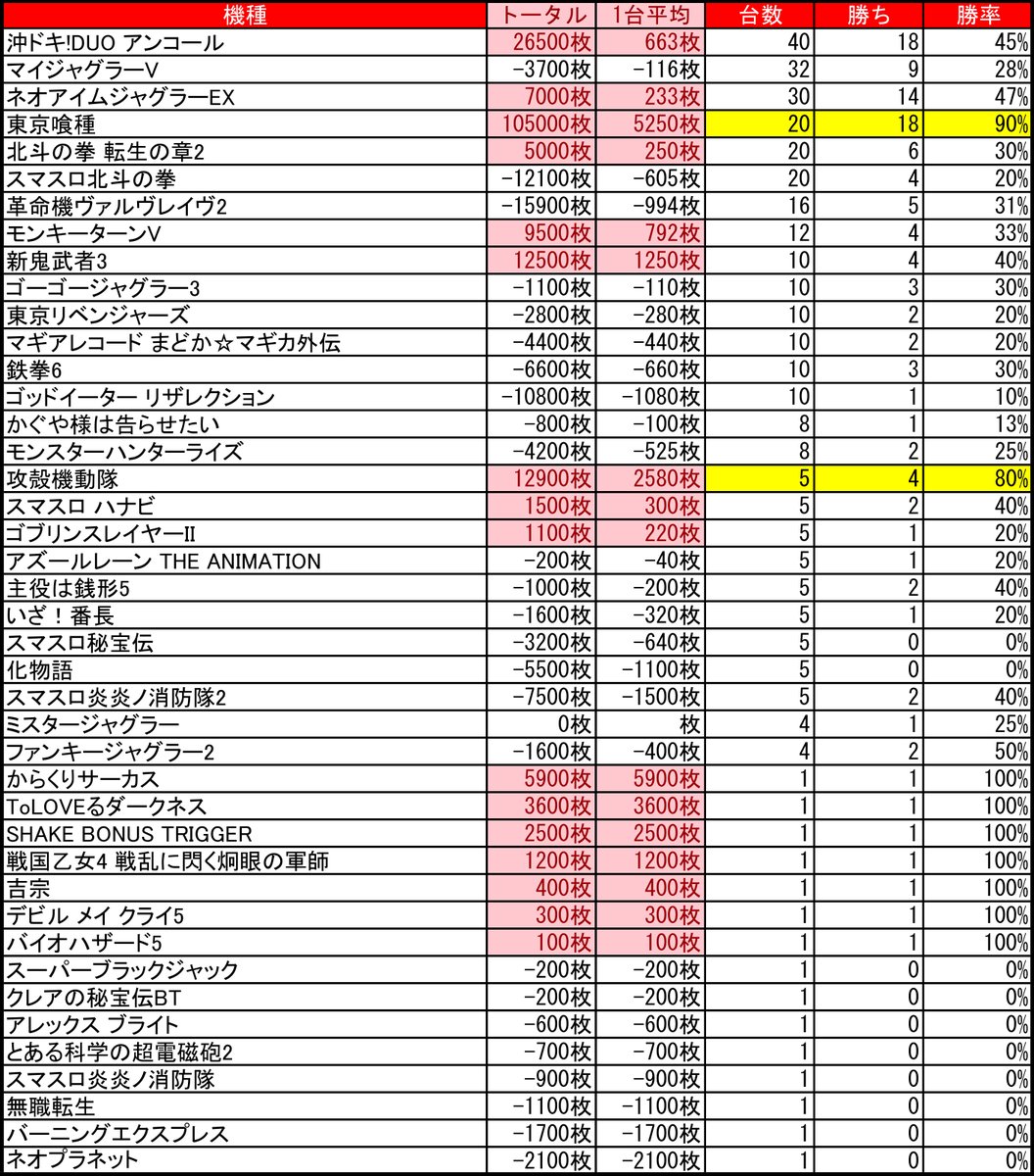 ▶︎ 東京喰種 平均+5,234枚 (18/20)